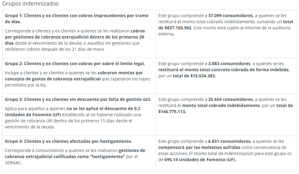 Desde el banco, en tanto, emitieron un comunicado en donde explicaron que “en virtud de este acuerdo, compensaremos a 61.546 consumidores que se estimaron afectados, por un monto total aproximado de CLP 1.000 millones. La forma de compensación será coordinada directamente con cada beneficiario”.