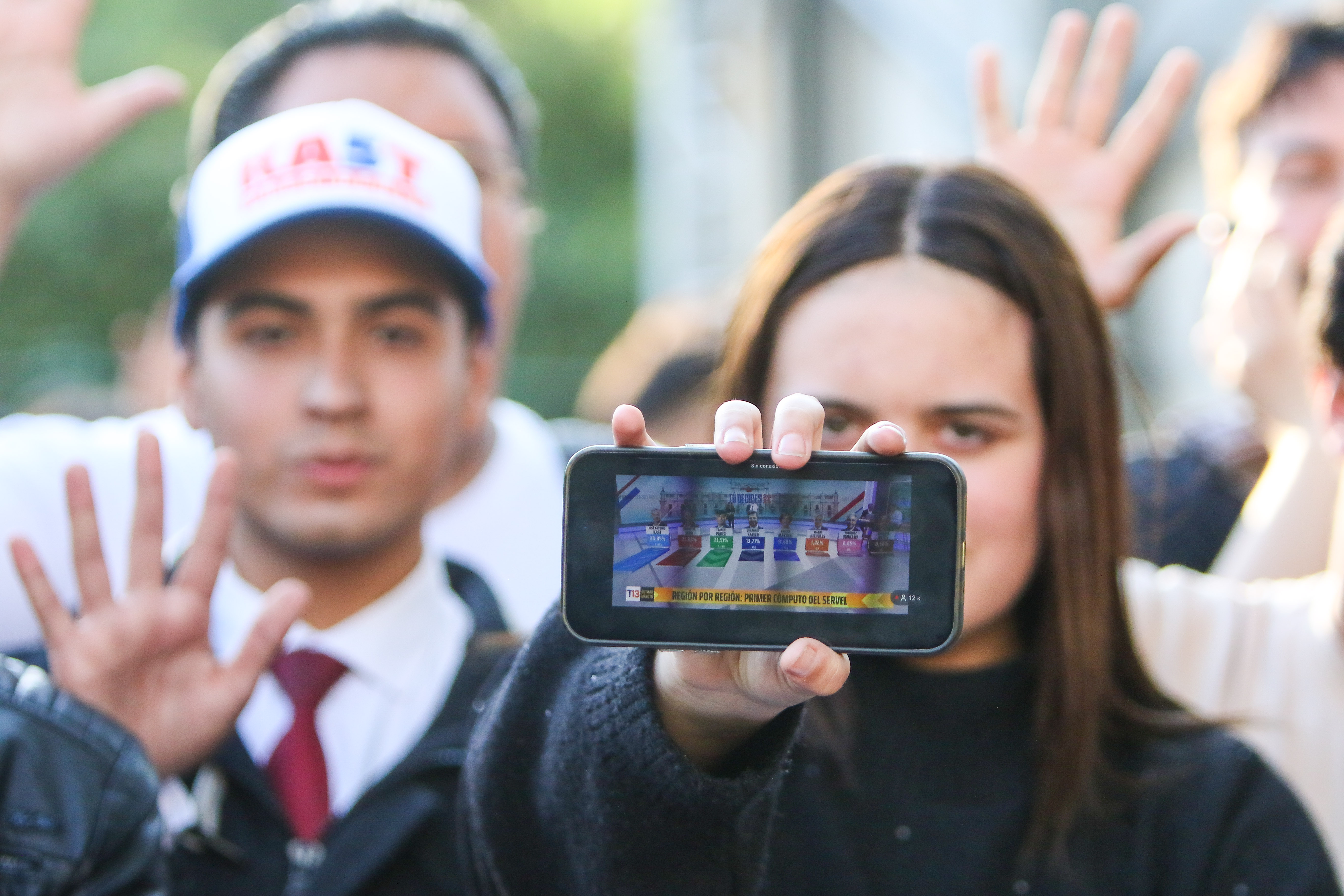 Adherentes de José Antonio Kast esperan los resultados de las elecciones a las afueras de su comando. FOTO: LUKAS SOLIS / AGENCIAUNO