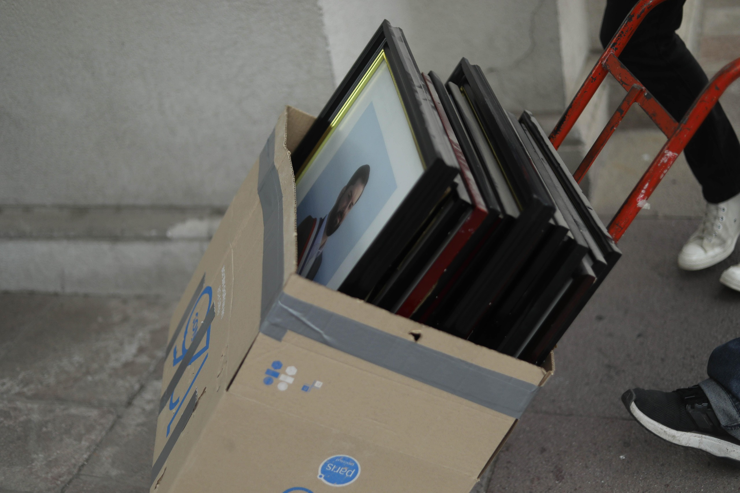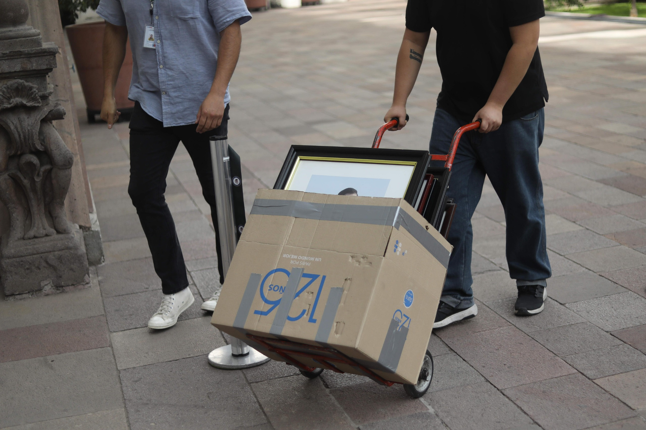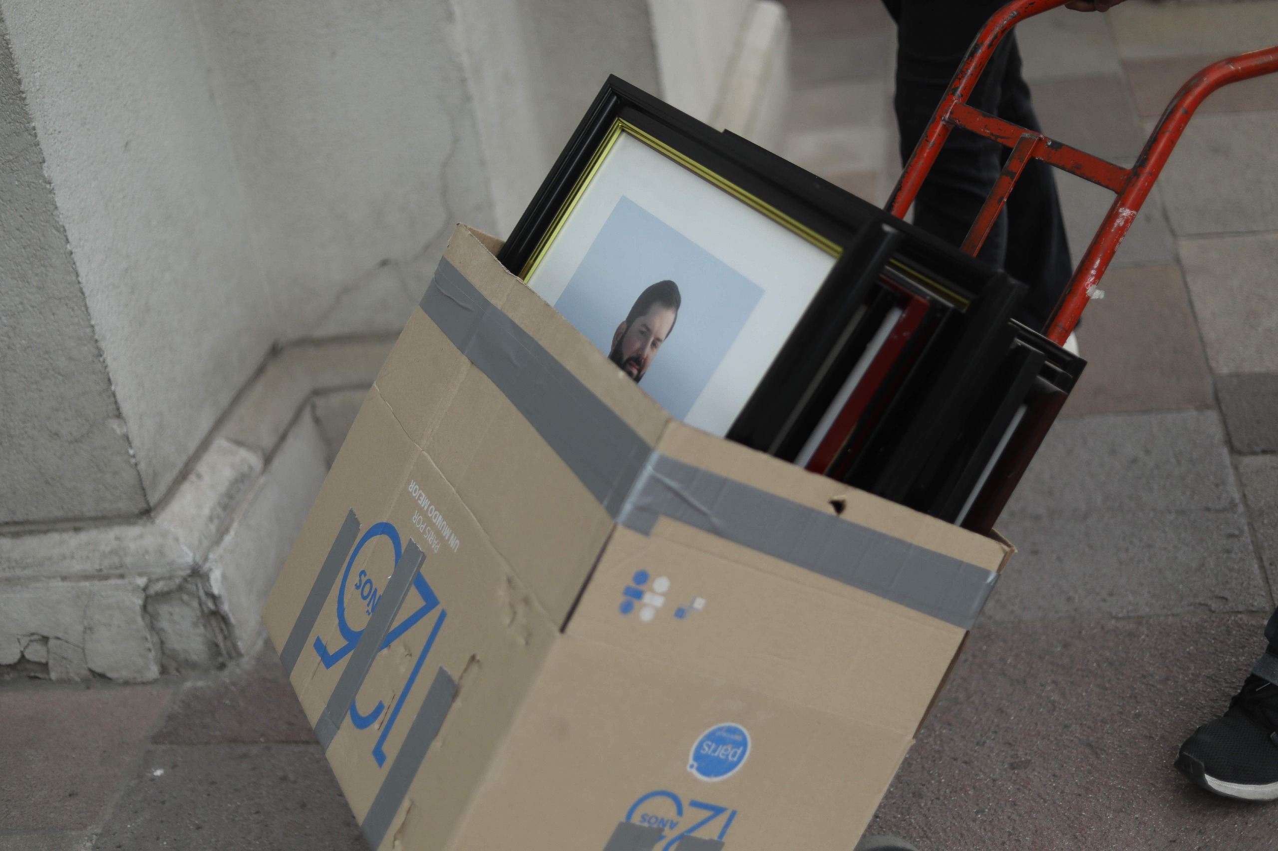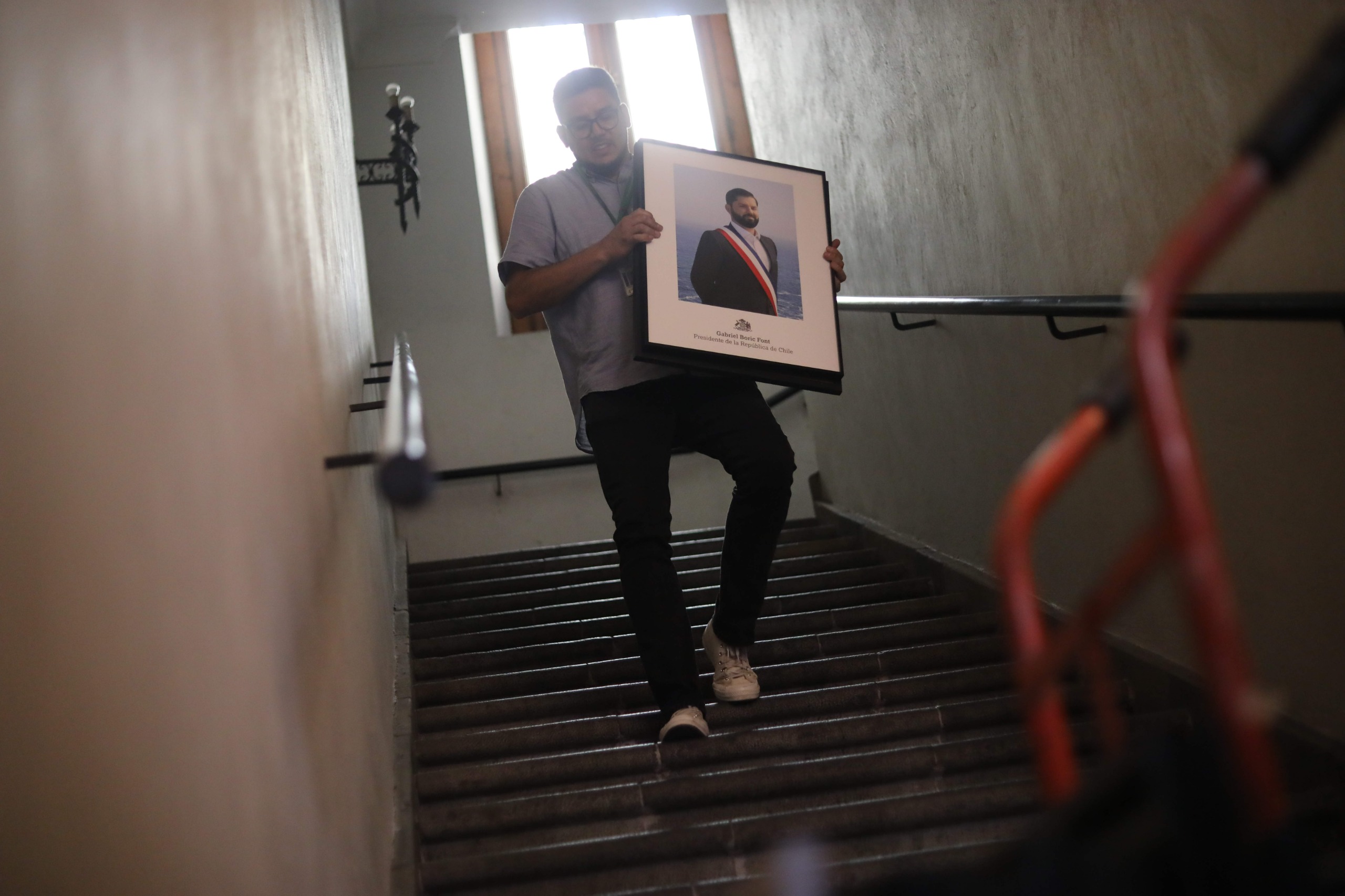 Y esta jornada ya comenzó el retiro de algunos recuadros de Gabriel Boric desde La Moneda mediante unas cajas.