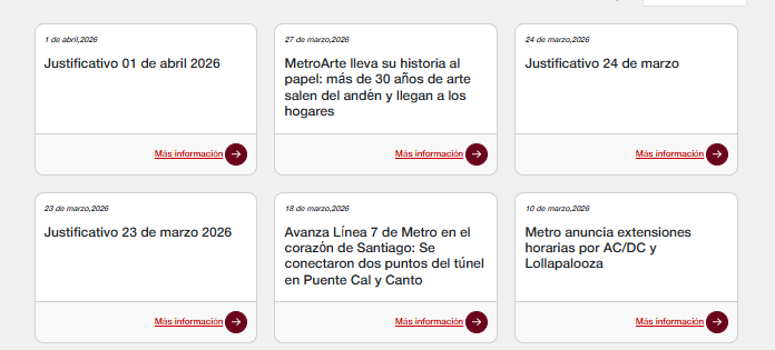 Lo ocurrido este jueves no aparece como un hecho aislado. Según una revisión de las publicaciones oficiales disponibles en el sitio de Metro, la compañía acumula 10 justificativos entre el 23 de marzo y el 23 de abril, asociados a retrasos, eventos operacionales, extensiones horarias o contingencias en el servicio.