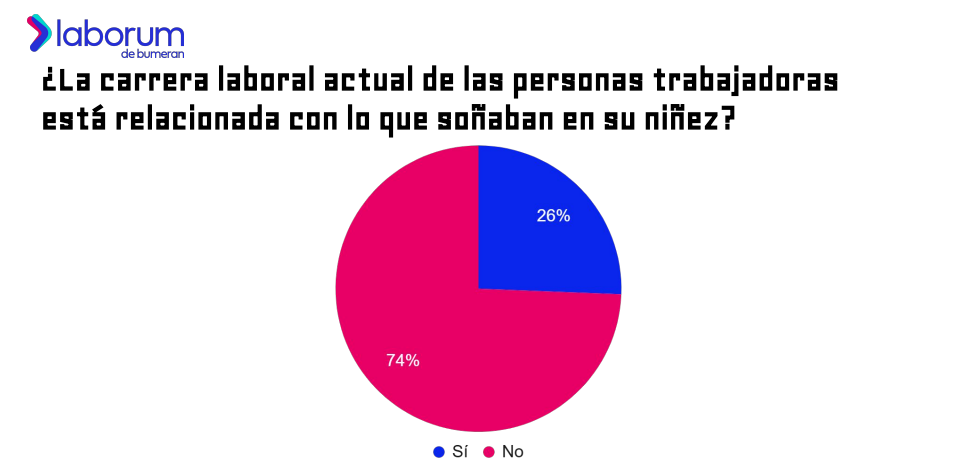 - Solo el 26% de las personas trabajadoras en Chile ejerce la profesión que soñaba en su niñez, lo que significa que el 74% no trabaja en el área anhelada.
