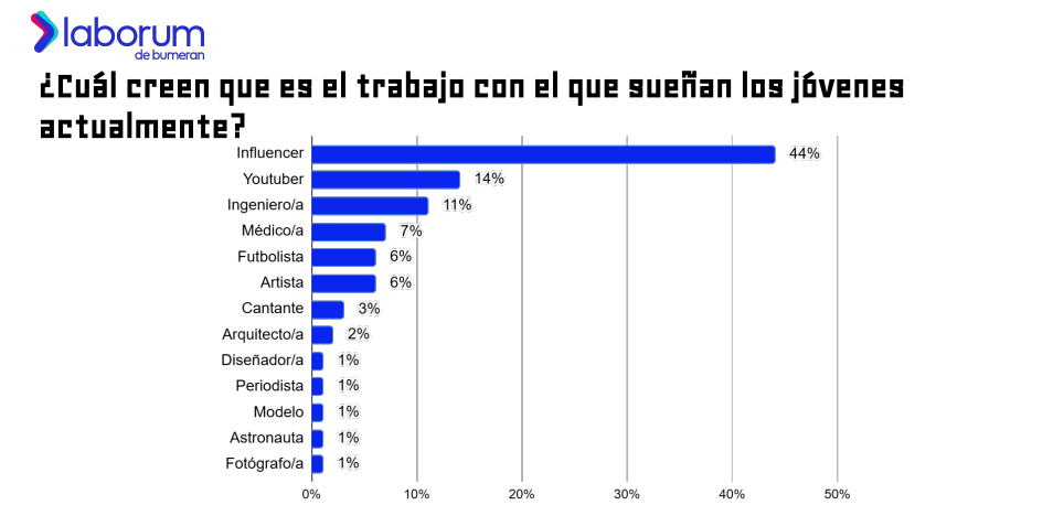 - Profesiones soñadas más frecuentes: Ingeniero (21%), Médico (10%), Futbolista (9%), Profesor (6%) y Cantante (6%).