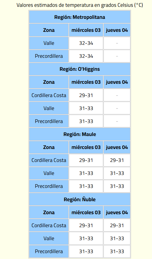 Este lunes, la Dirección Meteorológica de Chile (DMC) actualizó su aviso meteorológico por altas temperaturas en diversas regiones del centro y centro-sur del país.