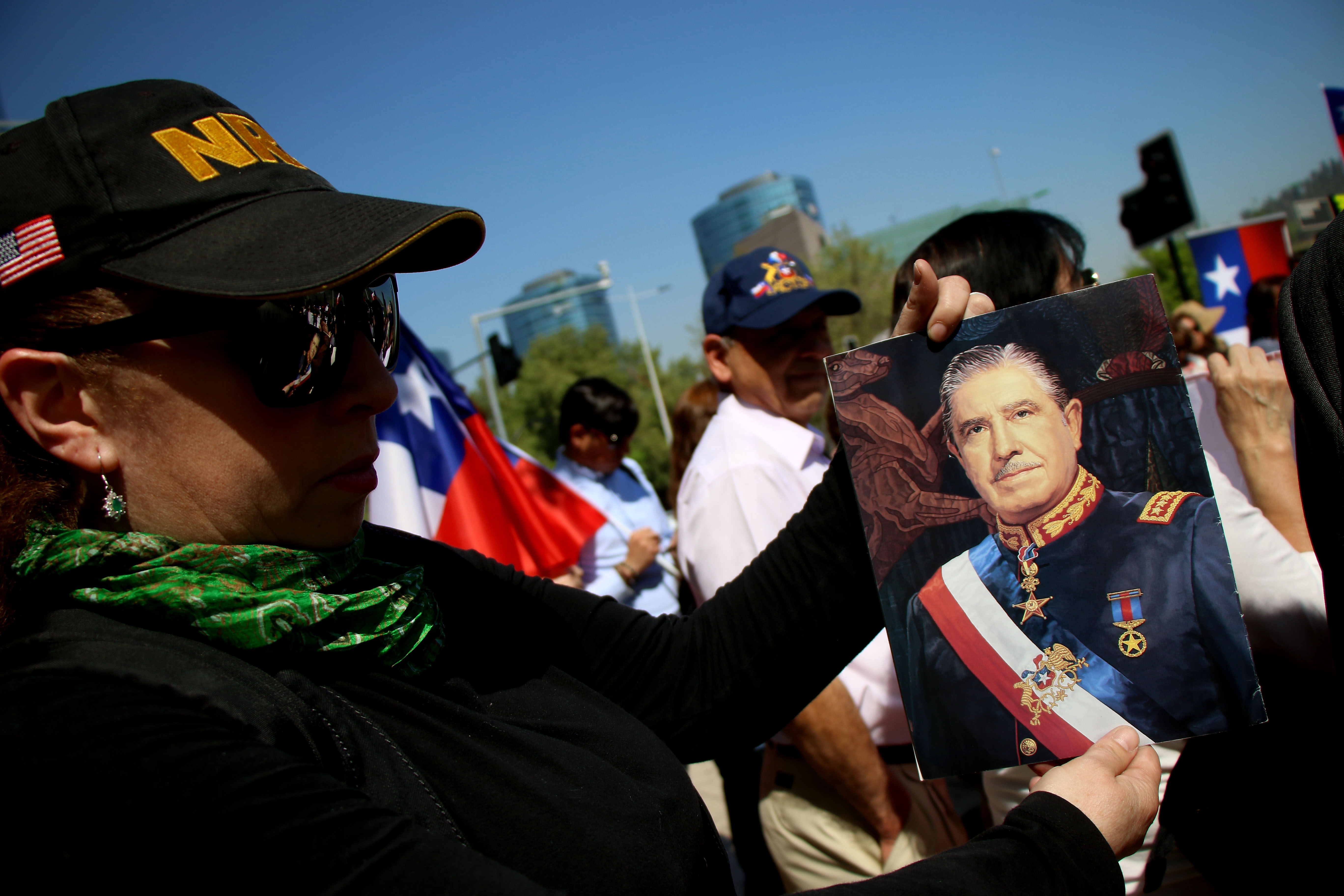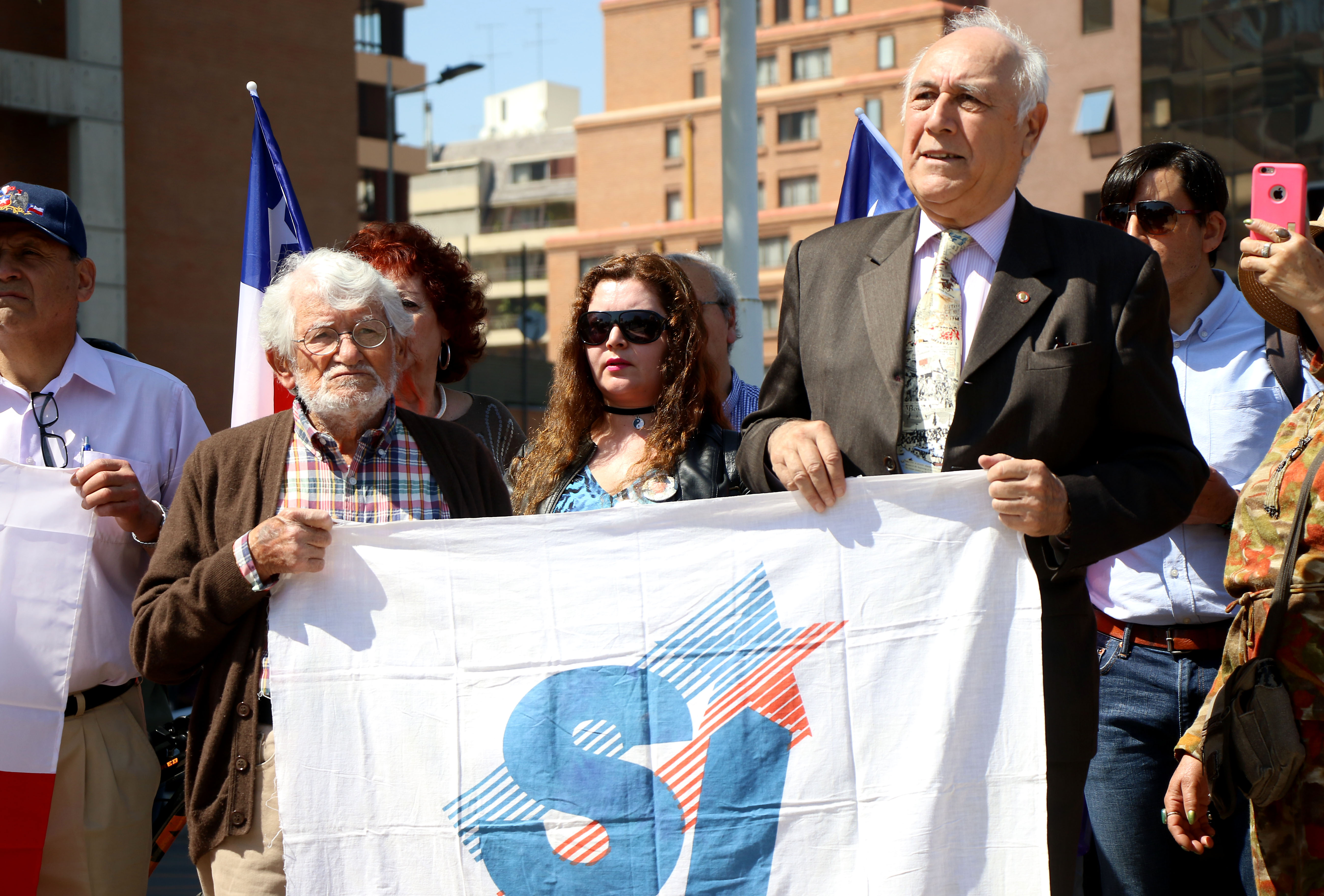 Seguidores de Augusto Pinochet y votantes del SÍ llegaron al Memorial Jaime Guzmán en la comuna de Las Condes para conmemorar el plebiscito de 1988, que significó una derrota para el régimen militar.