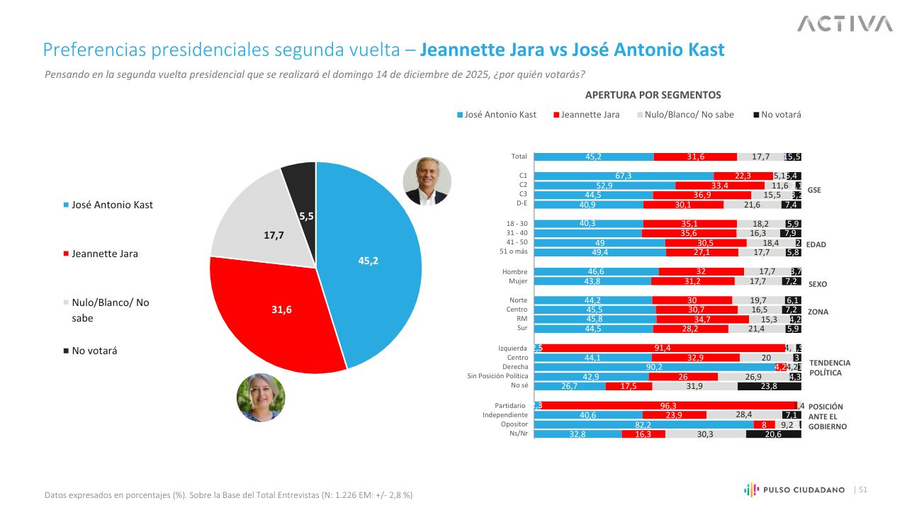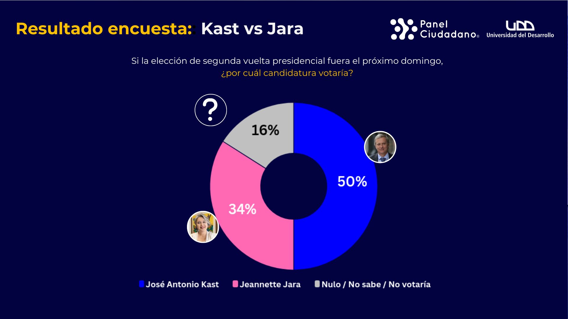 Al revisar los sondeos previos al inicio de la veda electoral, la encuesta Panel Ciudadano UDD mostró que un 16% de las personas consultadas anularía, no sabe o no votaría en un balotaje entre Jeannette Jara y José Antonio Kast.
