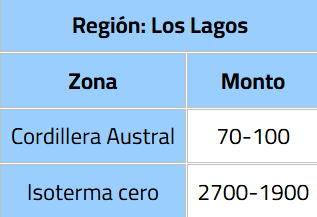 ¿Cuánta lluvia caerá en Los Lagos?
