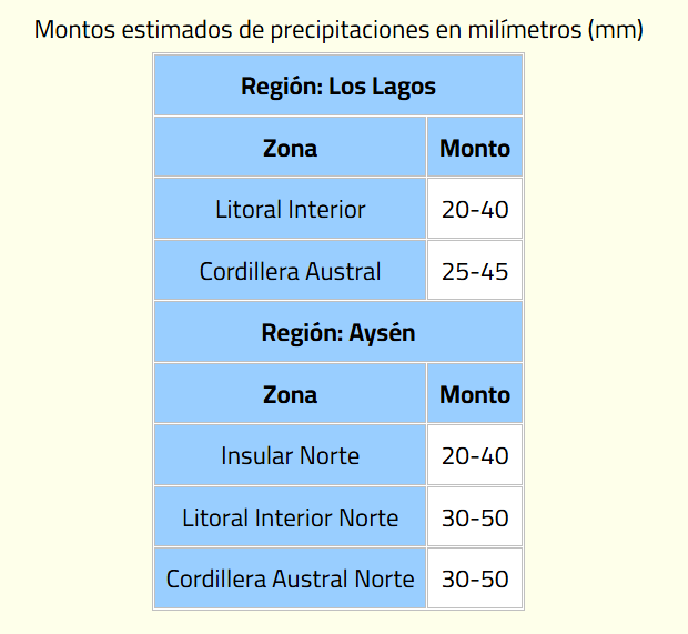 Desde la Dirección Meteorológica de Chile detallaron que las precipitaciones variarán de normales a moderadas.
