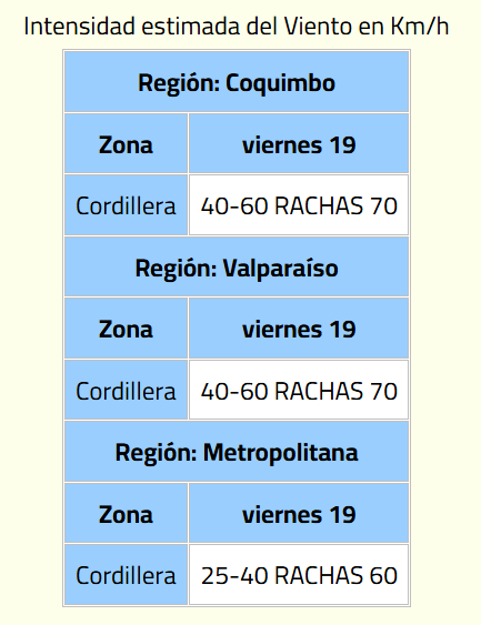 Desde la Dirección Meteorológica de Chile (DMC) señalaron que además existe la probabilidad de viento blanco.