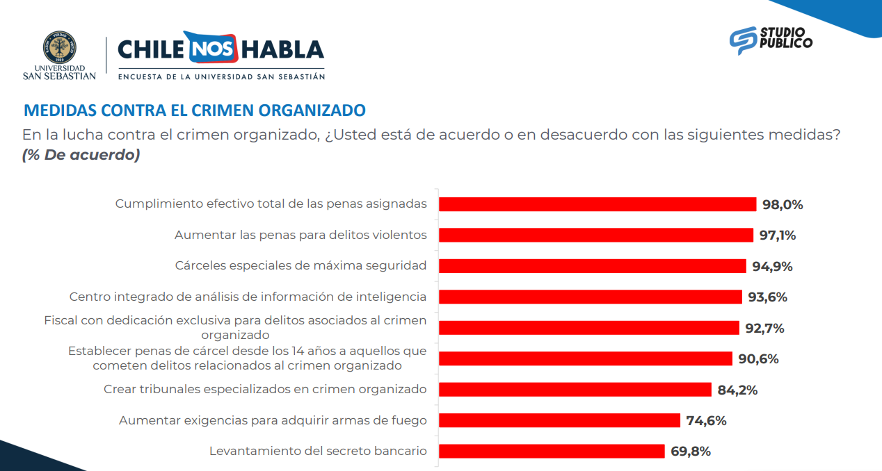 “Todas las medidas superaron el 50% de aprobación”, explicó Pía Greene, académica investigadora del Centro de Estudios en Seguridad y Crimen Organizado (CESCRO).