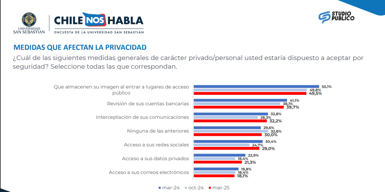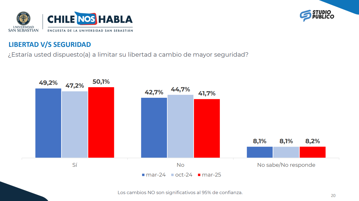 Además, un 50,1% afirmó estar dispuesto a limitar su libertad a cambio de más seguridad.