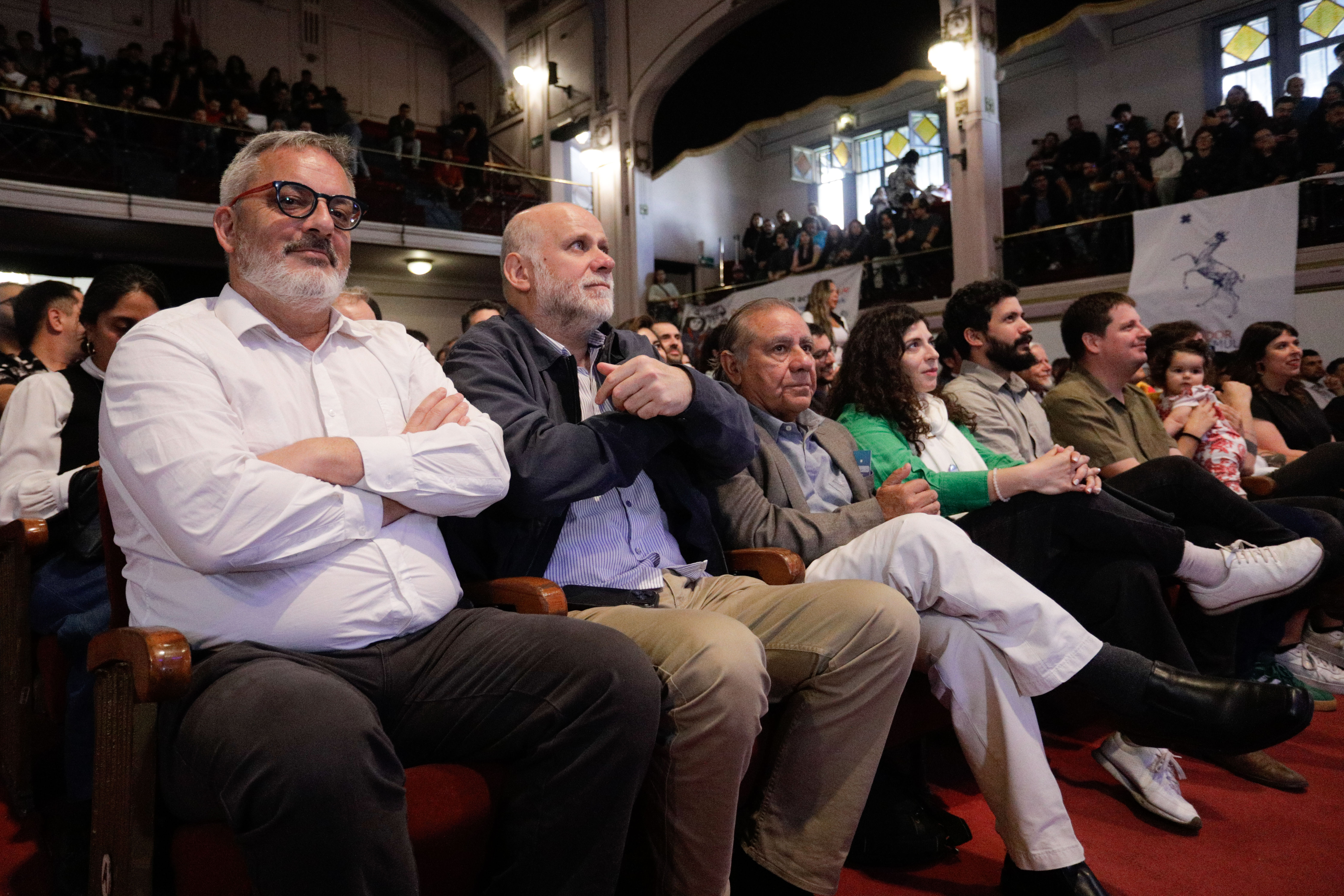 Gonzalo Winter, Francisca Gallegos y Gael Yeomans participan del primer congreso Ideológico del Frente amplio. FOTO: LUKAS SOLIS / AGENCIAUNO