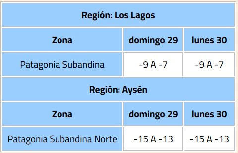 Debido a las bajas temperaturas en la Región de Los Lagos, Senapred declaró Alerta Amarilla para la provincia de Palena.