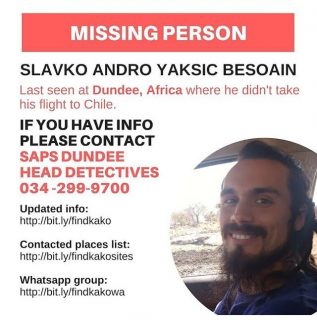 Este sábado 20 de octubre fue encontrado sin vida el cuerpo de Slavko Andro Yaksic Besoain en la morgue de la localidad de Ladysmith, Sudáfrica, quien se encontraba perdido desde el 25 de septiembre en ese país.