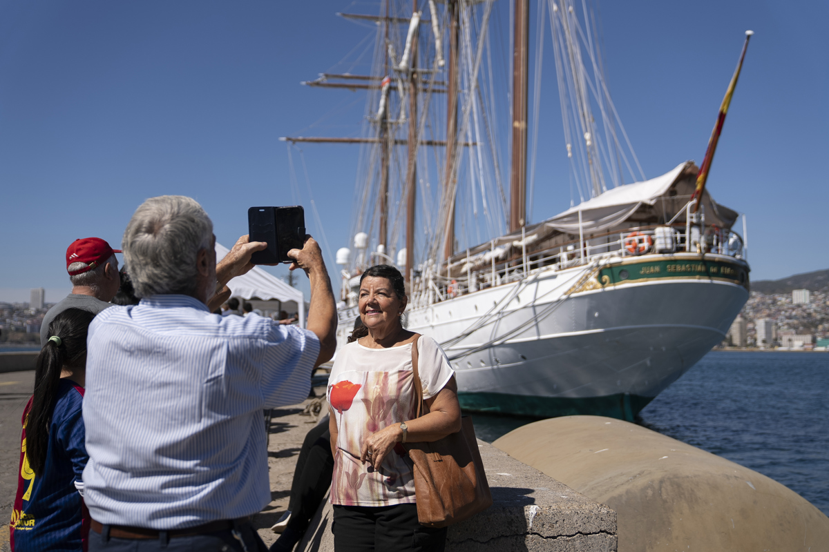 (EFE) — Cientos de curiosos se acercaron este domingo al puerto de Valparaíso para visitar el buque escuela Juan Sebastián de Elcano, a bordo del cual viaja la princesa Leonor de Borbón en el marco de su viaje de instrucción militar, y que abrió sus puertas este fin de semana en su cuarta parada en América.