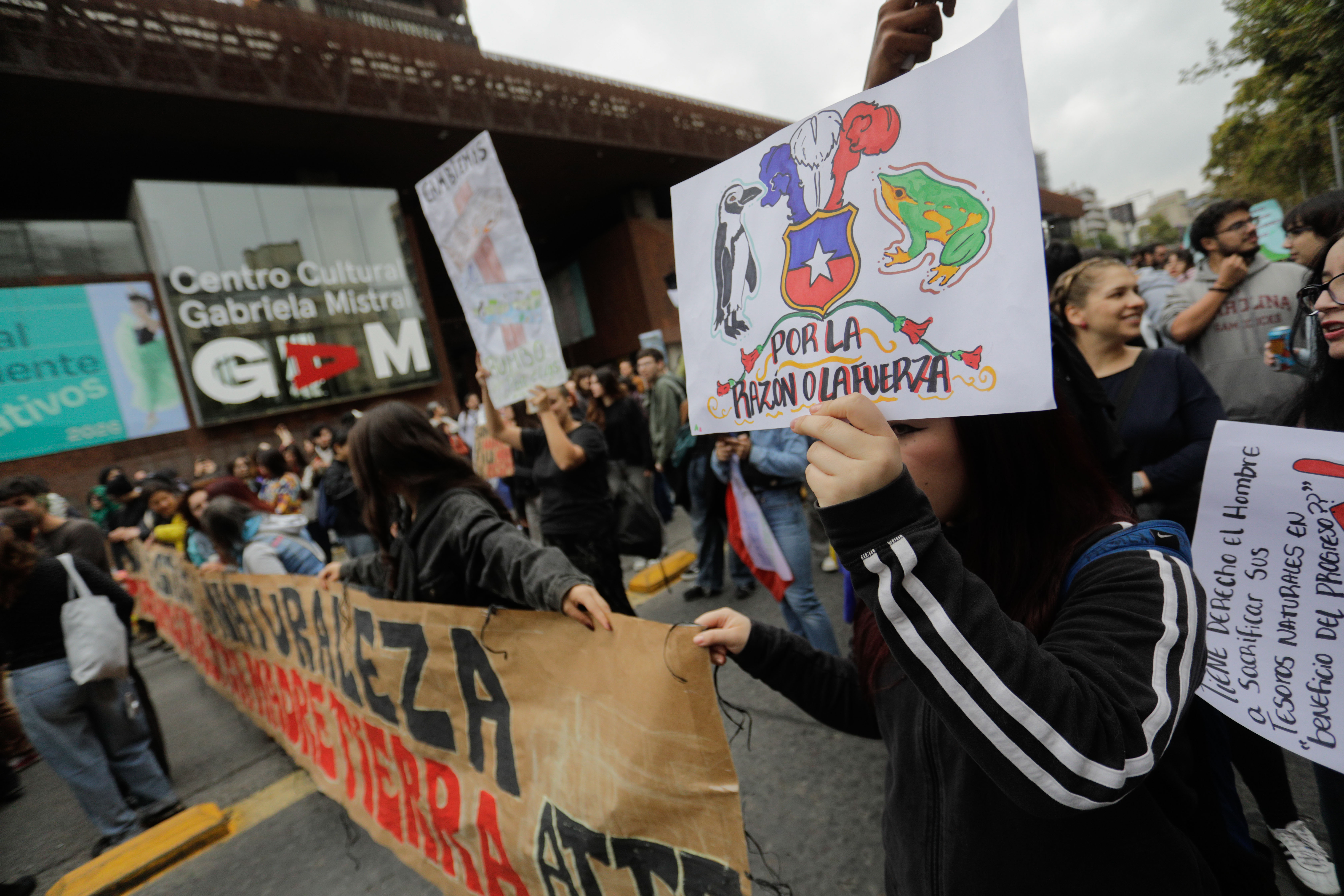 Manifestantes se reúnen para marchar en defensa del medio ambiente como respuesta a los 43 decretos supremos que fueron retirados por el gobierno de Jose Antonio Kast. FOTO: LUKAS SOLIS / AGENCIAUNO