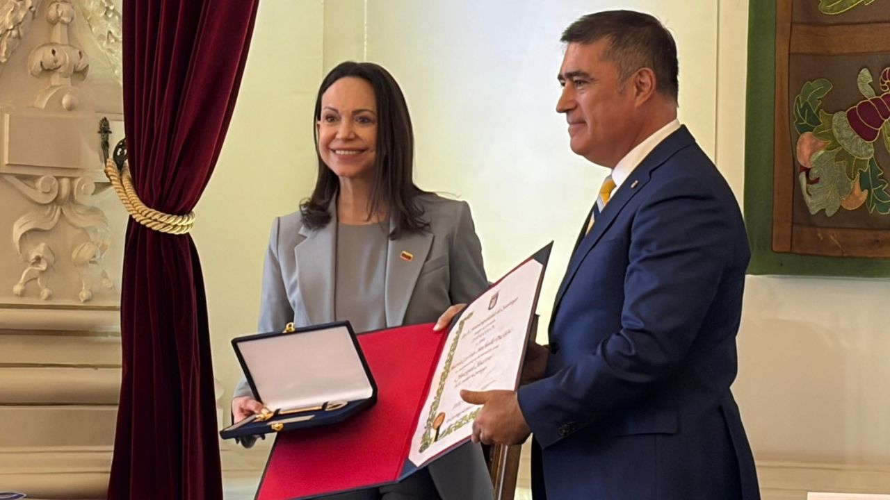 “Hoy entregamos las Llaves de la Ciudad de Santiago y declaramos Visitante Ilustre a la líder venezolana y Premio Nobel de la Paz, María Corina Machado, reconociendo su liderazgo y su compromiso con la democracia y los derechos humanos”, compartió por X la autoridad comunal.