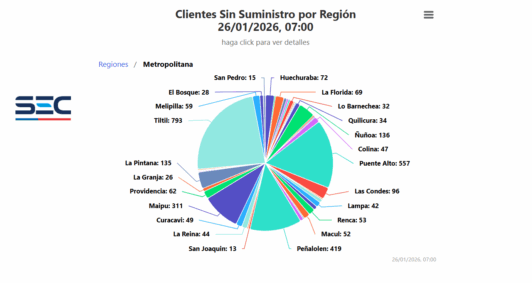Durante la madrugada y la mañana de este lunes, miles de hogares de la Región Metropolitana permanecen sin suministro eléctrico. De acuerdo con el más reciente informe de la Superintendencia de Electricidad y Combustibles (SEC), elaborado durante la mañana, más de 3 mil clientes se encuentran afectados por la interrupción del servicio en la capital.