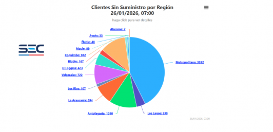 Durante la madrugada y la mañana de este lunes, miles de hogares de la Región Metropolitana permanecen sin suministro eléctrico. De acuerdo con el más reciente informe de la Superintendencia de Electricidad y Combustibles (SEC), elaborado durante la mañana, más de 3 mil clientes se encuentran afectados por la interrupción del servicio en la capital.