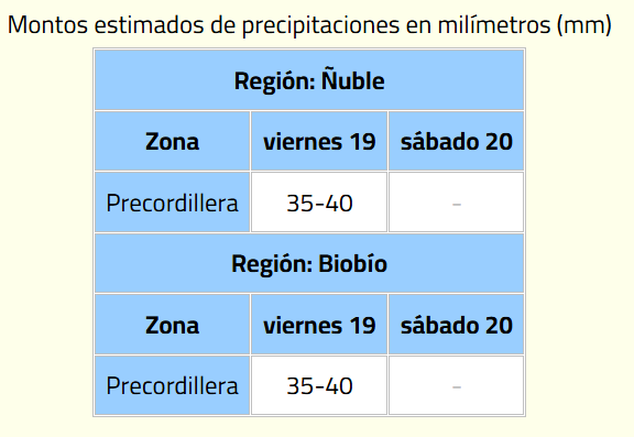 El organismo detalló que se trata de precipitaciones normales a moderadas que afectarán dos regiones del país debido a un “frente frío”.