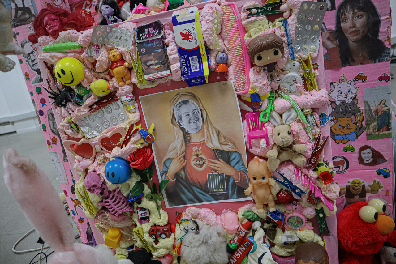 Dentro de la exposición había una pintura llamada “Máquina de Guerra” que aludía a un retrato semidesnudo de Camila Polizzi.