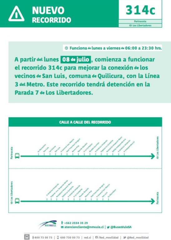 En Quilicura se inaugurará el recorrido 314c, el que conectará el sector de San Luis con la estación Los Libertadores de la Línea 3 de Metro.