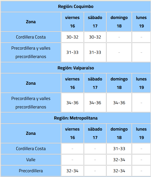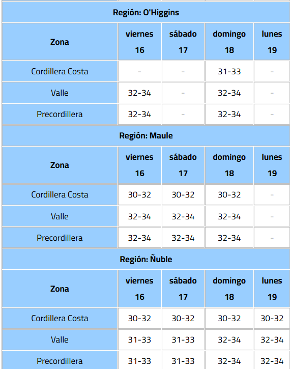 Según la Dirección Meteorológica de Chile (DMC), el fenómeno comenzará la tarde de este viernes 16 de enero y se extenderá hasta el lunes 19.