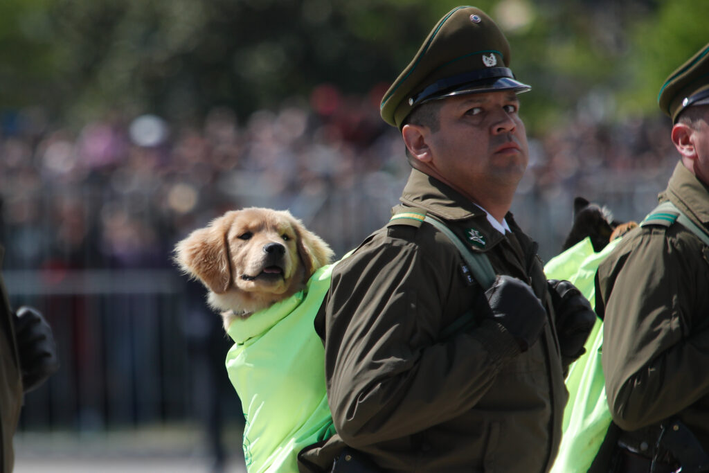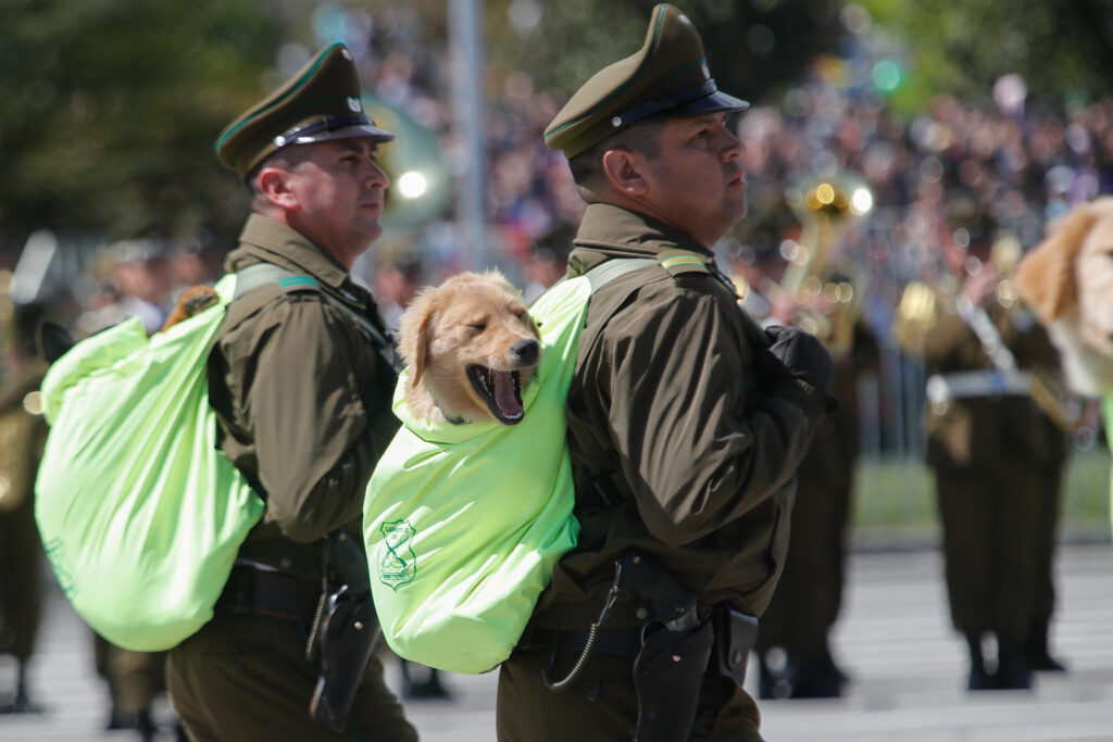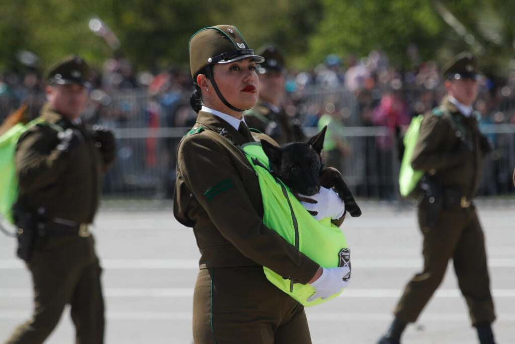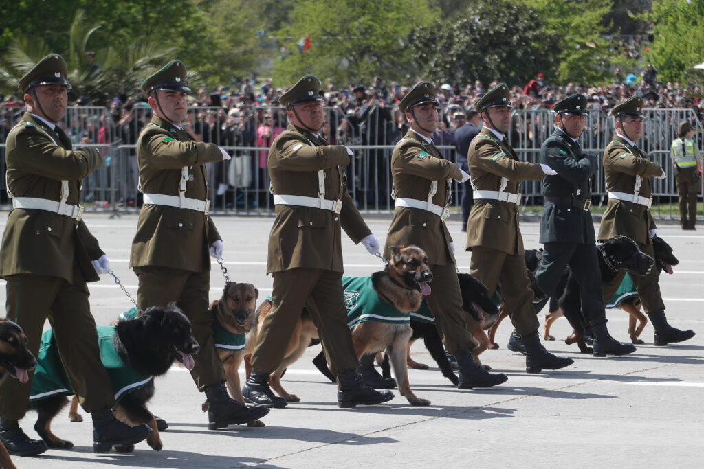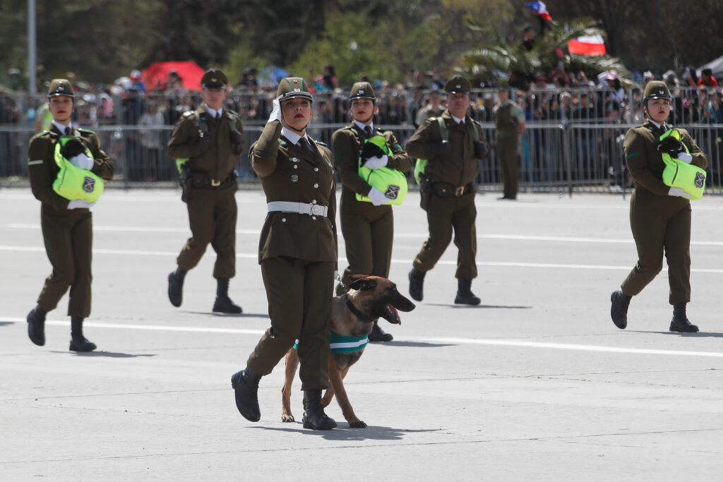 Carabineros y el grupo de adiestramiento canino durante la Parada Militar 2024 desde la Elipse del Parque O’Higgins (Agencia Uno)