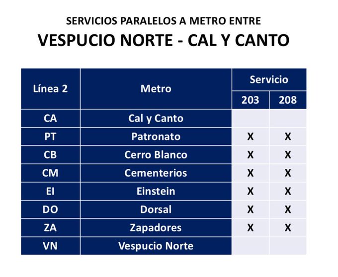 El servicio 203 y 208 te puede servir si te tienes que trasladas entre la Estación Intermodal Americo Vespucio y Cal y Canto.