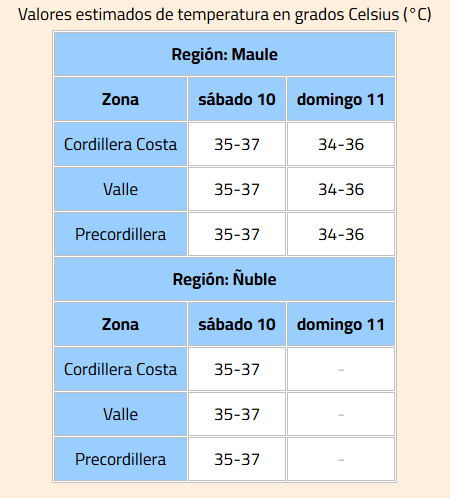 ¿En qué regiones de la zona centro-sur habrá altas temperaturas?