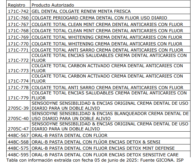 El Servicio Nacional del Consumidor (Sernac) solicitó información a las empresas Procter & Gamble Chile Limitada (Oral-B), Haleon, ex GSK Chile (Sensodyne), y Colgate-Palmolive Chile S.A. (Colgate), luego de que el Instituto de Salud Pública (ISP) emitiera una alerta sobre eventuales efectos adversos asociados al uso de pastas dentales que contienen fluoruro de estaño.