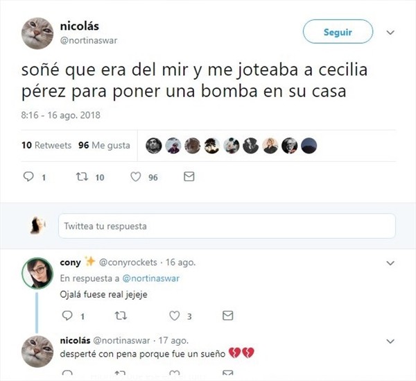 “No soy experto en penal, pero sospecho que un sueño, o tuitear sobre uno, no es delito”, dijeron en Twitter.