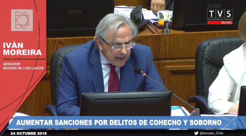 Entre las intervenciones que se realizaron en la sala, una de las que más llamó la atención fue la del senador UDI Iván Moreira, quien fue formalizado por emitir boletas falsas al grupo Penta, por un total de $35 millones, dinero que fue usado para financiar su campaña parlamentaria.