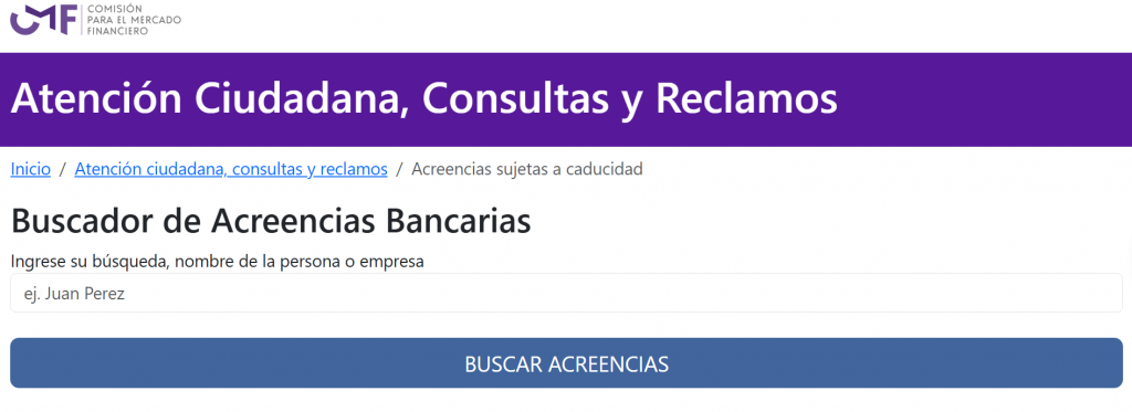 Las acreencias bancarias corresponden a dinero olvidado o no reclamado en bancos y cooperativas, como vales vista, depósitos o reembolsos, que no han tenido movimiento durante dos años.