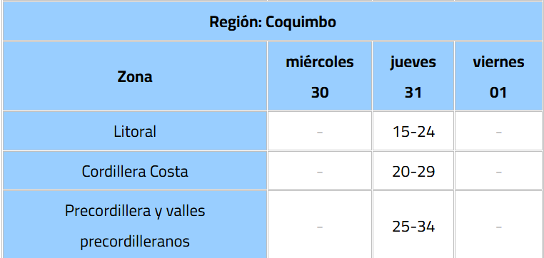- Región de Coquimbo (Litoral, Cordillera Costa, Precordillera y valles precordilleranos)