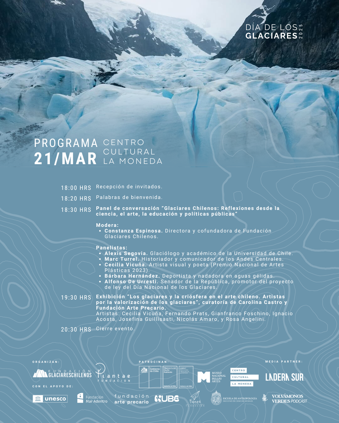 El evento para celebrar el Día de los Glaciares en Chile se llevará a cabo los días 21 y 22 de marzo, con paneles de conversación, actividades educativas, y talleres de arte y ciencia. Ambas jornadas serán gratuitas y abiertas a toda la familia, con previa inscripción.