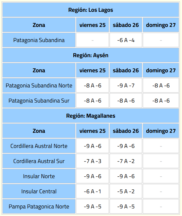 Se trata de heladas normales a moderadas debido a una alta presión fría, que se presentarán desde la madrugada del viernes 25 hasta la mañana del domingo 27 de julio.