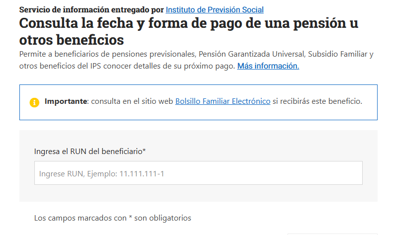 - Para realizar la consulta solo es necesario ingresar el RUN del beneficiario o beneficiaria.
