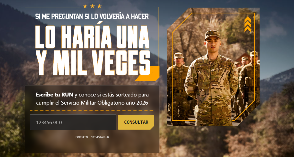 Los resultados del sorteo general para el Servicio Militar 2026 están disponibles en la página serviciomilitar.cl.