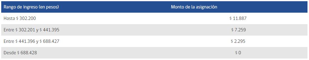 El monto mensual de la Asignación Familiar depende del ingreso del trabajador. Los valores vigentes, a contar del 1 de agosto de 2018, son: