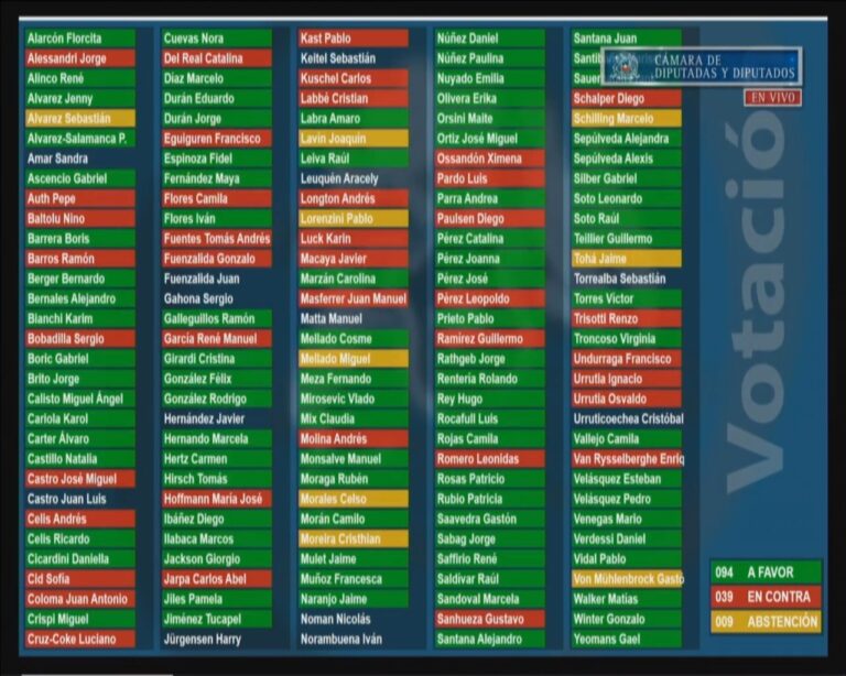 La votación tuvo un resultado de 94 votos a favor, 39 en contra y 9 abstenciones, preferencias entre las que llamó la atención la ayuda de parlamentarios de RN que apoyaron este proyecto, como Paulina Nuñez, Jorga Durán, Camilo Morán, entre otros, y algunos que se abstuvieron como los militantes del PS Marcelo Schilling y Jaime Tohá.