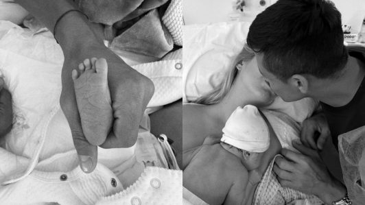 "Parents", escribió la novia del jugador de La Roja en la publicación.