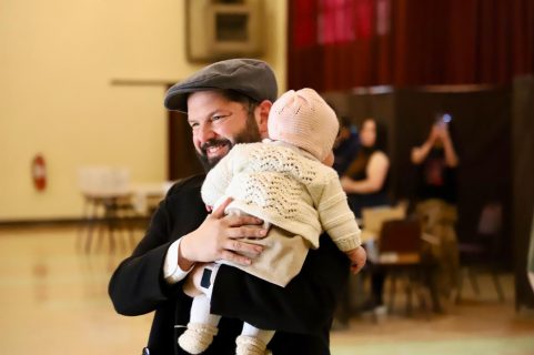 La menor estuvo en brazos del mandatario durante todo el proceso de votación.