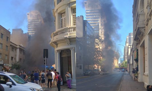 18-02-2026 17:22 Micro se incendia y provoca desvíos de tránsito en pleno centro de Santiago Según TransporteInforma, los vehículos en la zona están siendo redirigidos por la Alameda hacia el poniente y posteriormente por Huérfanos, mientras se desarrollan las labores de control del fuego.