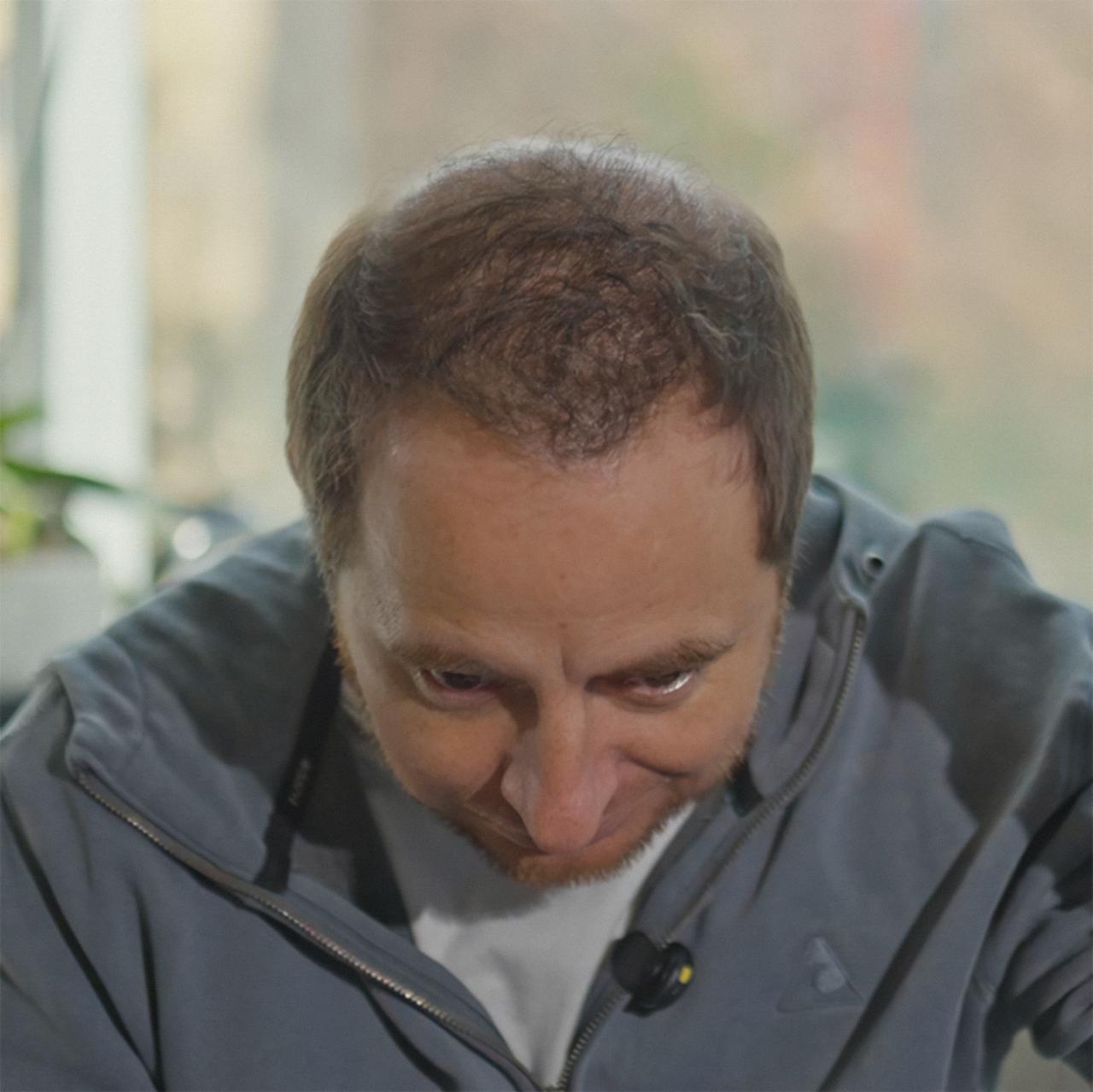 “Le propusimos una cirugía de implante capilar con técnica FUSS para optimizar su área donante, considerando una posible segunda cirugía. Con 3.500 folículos, cubrimos aproximadamente entre el 50% y 60% del área afectada. Actualmente, está en un 60% del crecimiento esperado, y en seis meses debería lograr una densidad aún mayor”.