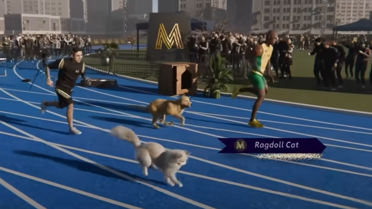 Bajo el título “Usain Bolt vs. Cheetah (guepardo) / cat /dog”, la producción muestra cómo se vería una carrera sobre 100 metros planos entre distintos animales y el exitoso deportista.