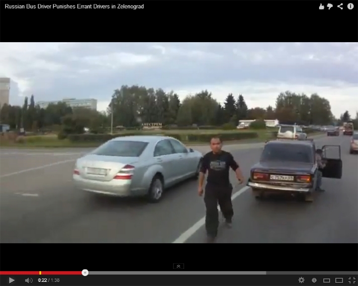 Alexei Volkov golpea con su bus a los vehículos que lo adelantan de manera imprudente.