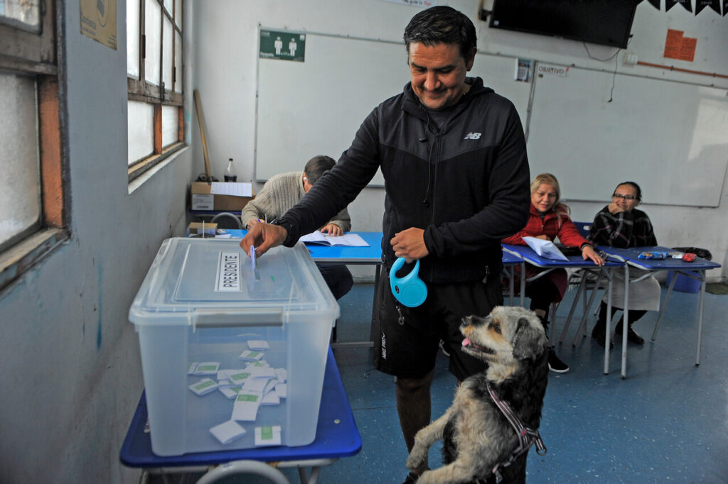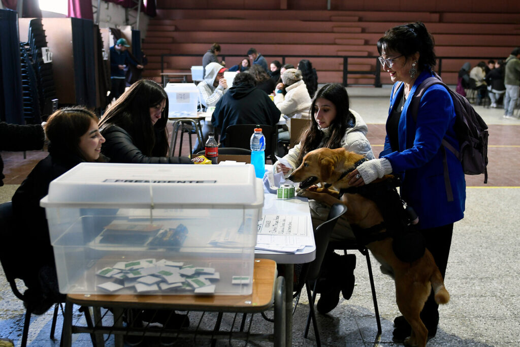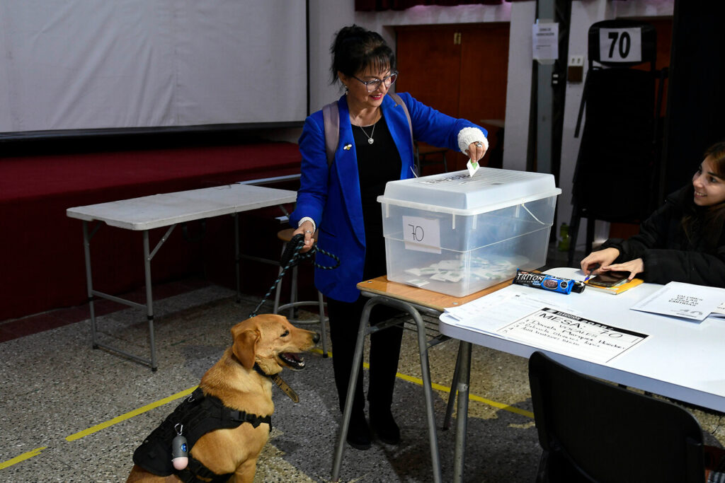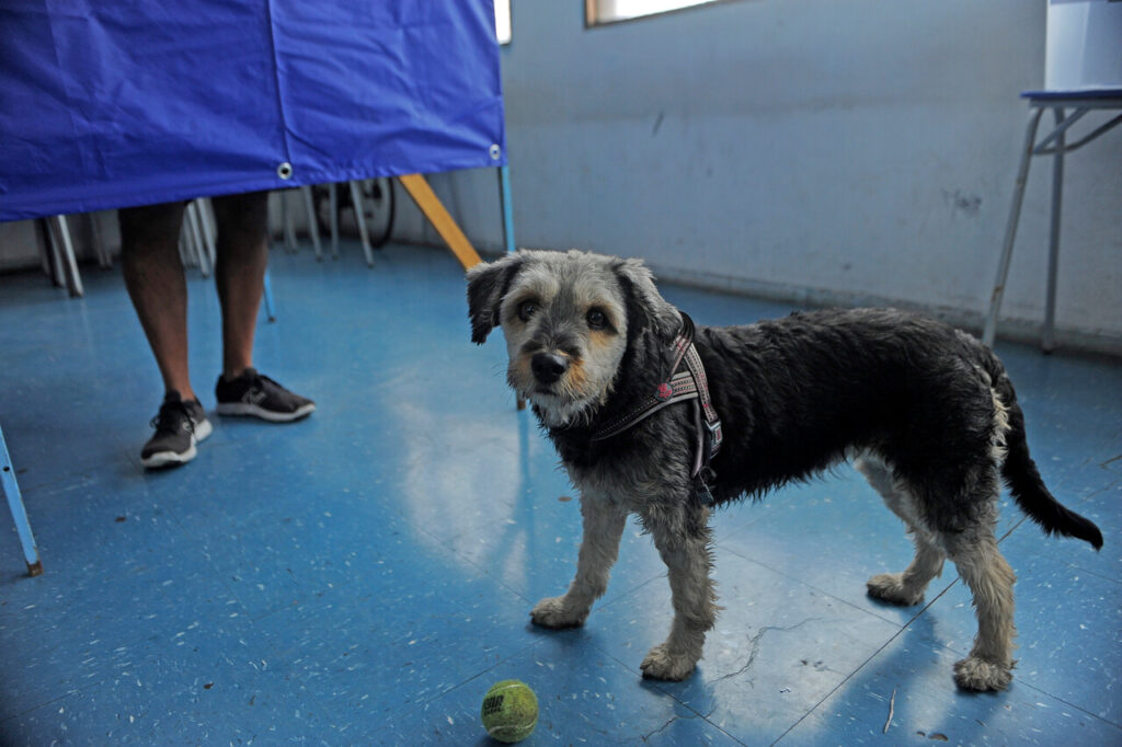 Desde algunos juguetones hasta otros con chalecos debido al frío, los perros se robaron más de una mirada y generaron sonrisas en los locales de votación a lo largo del país.