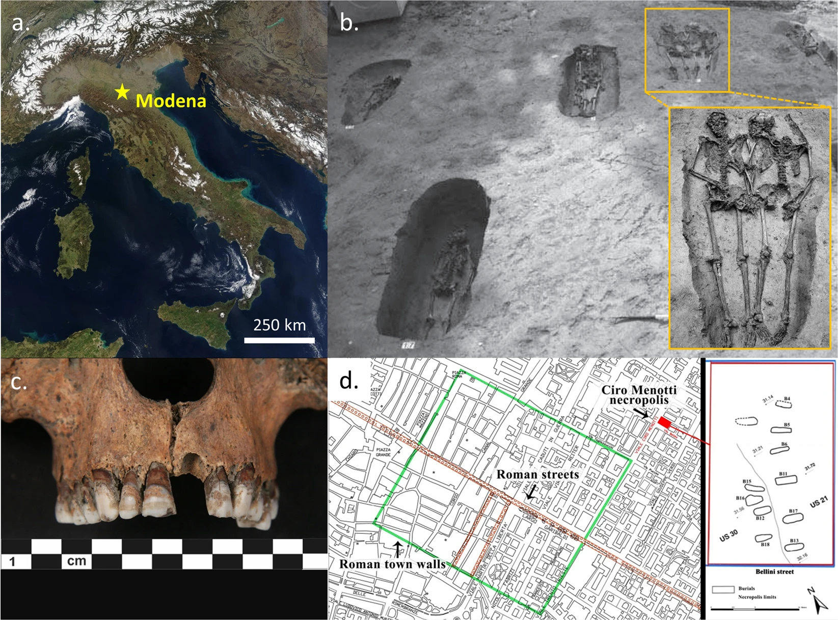 Los esqueletos fueron descubiertos en 2009 en excavaciones arqueológicas en una necrópolis de los siglos IV-VI d.C., en el norte de Italia. Sin embargo, las condiciones en que estos restos se encontraban no permitió identificar el sexo de estas personas.
